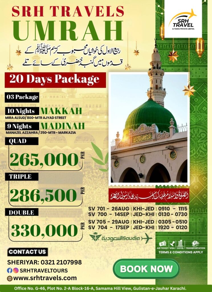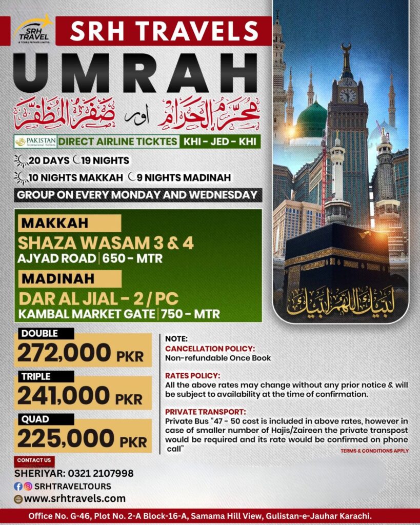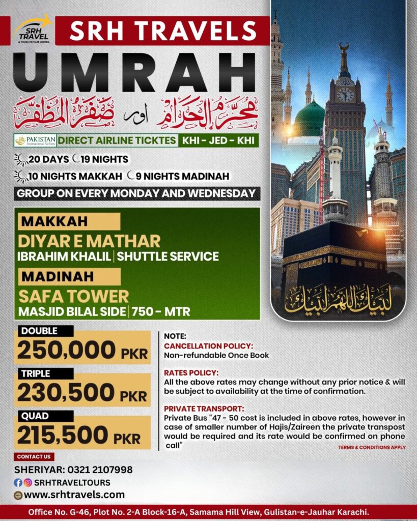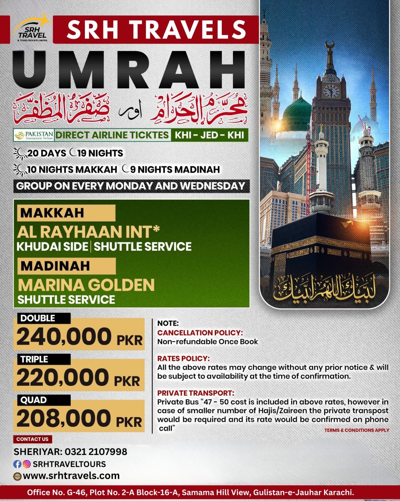 Total 20 days, 19 nights — 10 nights in Makkah, 9 in Madinah
